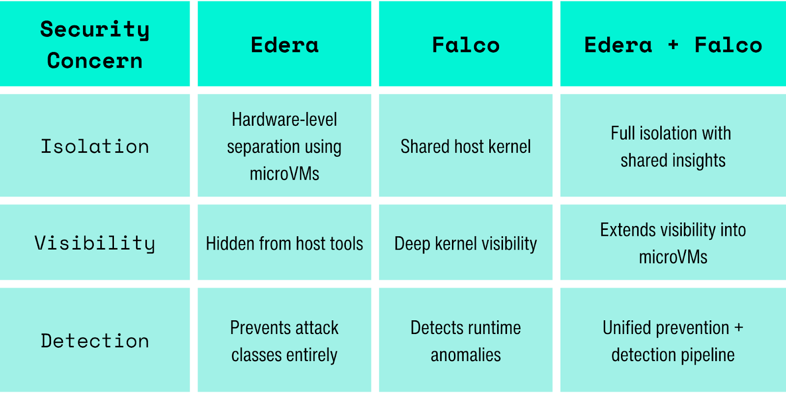 Today, we're excited to announce Edera's integration with Falco, the CNCF runtime security project that's become the go-to threat detection engine for Kubernetes environments. This integration solves a critical visibility gap that has emerged as teams adopt microVM-based isolation for their workloads.