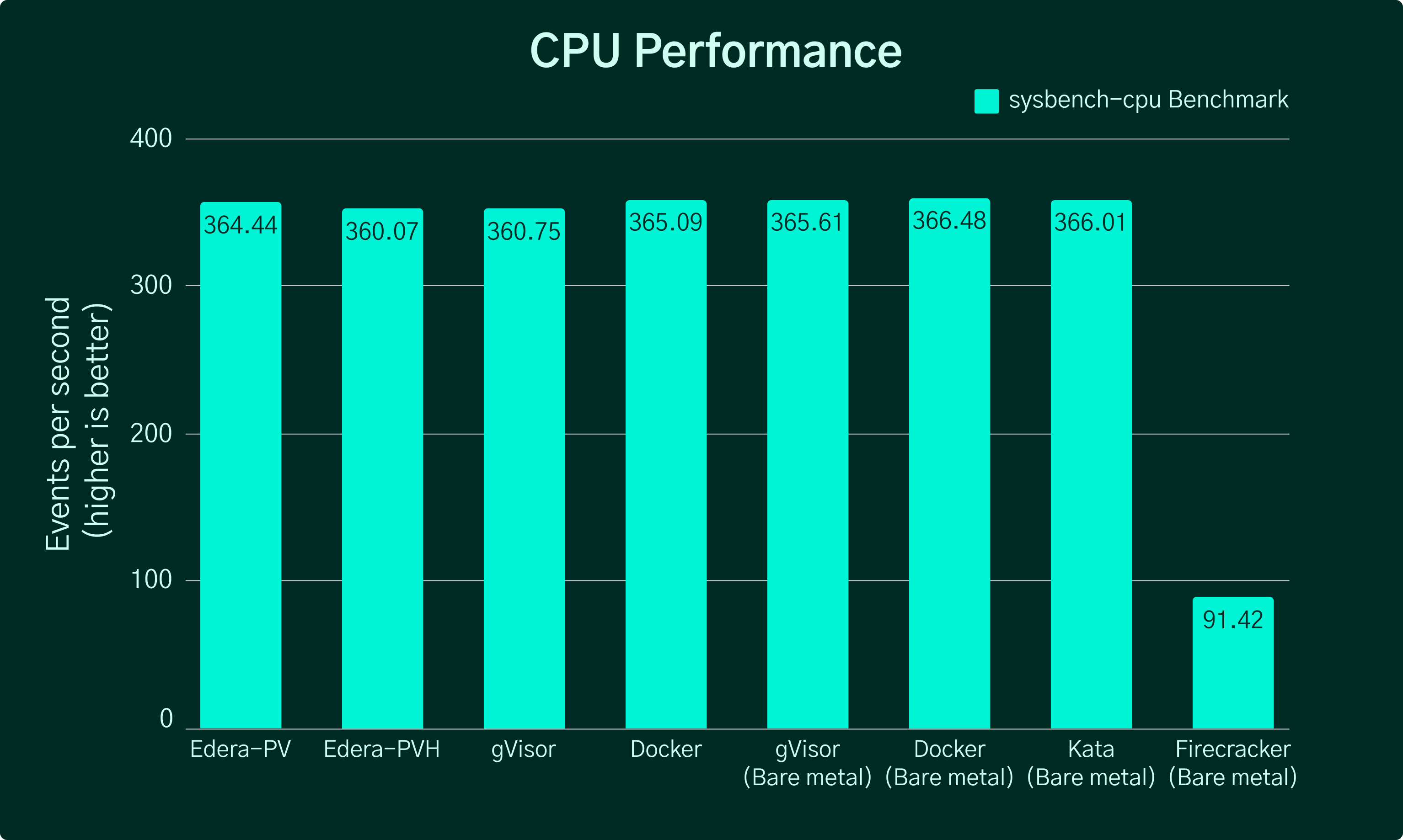 These results validate Edera Protect's architectural approach: using container-native hypervisor to provide strong isolation between containers while leveraging hardware virtualization extensions to maintain performance. The data shows that with Edera Protect, you no longer need to choose between security and performance—you can have both.