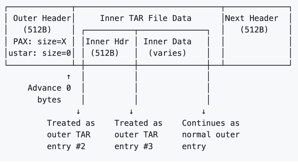 Vulnerable Processing (PAX size=X, ustar size=0):
